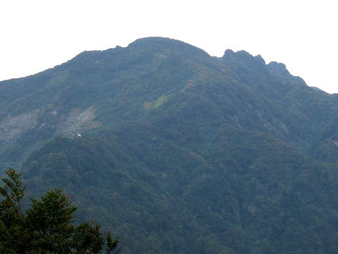中央は薬師岳、右のごつごつしたのが八海山の八ッ峰、左中央に小さく見える小屋が6合目の女人堂。