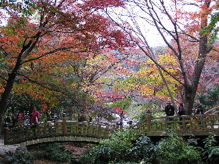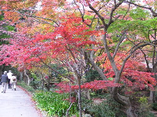 熱海梅園は紅葉でも名所です。 この日は曇り時々小雨といった天気で人出は多くありませんでしたが、観光バスは結構たくさん来ていました。