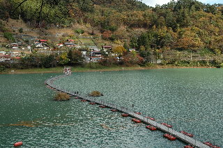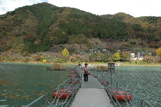 奥多摩湖から国道411号線を塩山方向に進んだところにあります。 浮橋のところにはバス停、駐車場、トイレがあります。