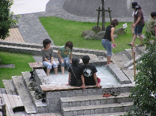 湯河原温泉、万葉公園にある足湯施設、独歩の湯です。 足の裏を刺激する9種類の泉があります。