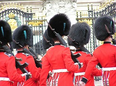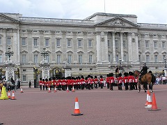 ロンドンの半日市内観光で行ったバッキンガム宮殿です。日曜日と衛兵交代の行進の時間という事で観光客で混雑していました。