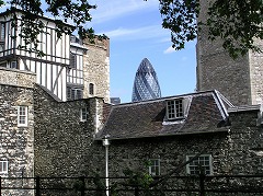 ロンドン市内の半日観光でロンドン塔で休憩したときに撮った写真です。 ちょうど船が通りブリッジが上がる(開く)ところを見る事ができました。 近くにノーマンフォスター設計の市庁舎やガーキン(30 St Mary Axe)がありました。