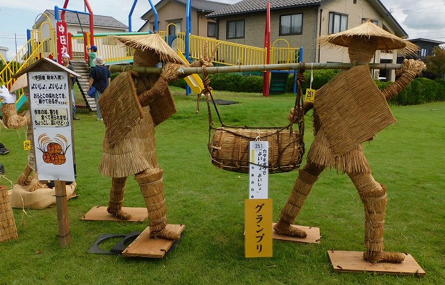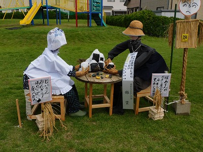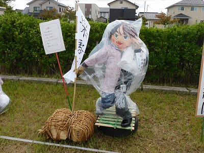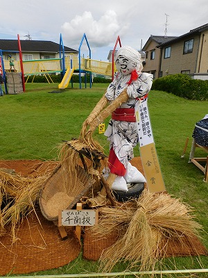 ![]() 素朴なかかしの部:爺さん、婆さまや千歯扱で脱穀だ | ![]() 子どもの部:中田のちいかわ |