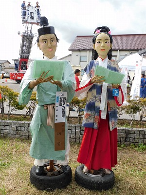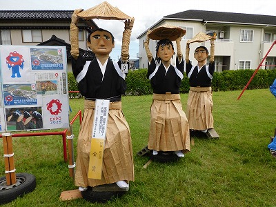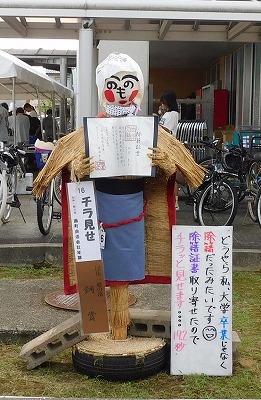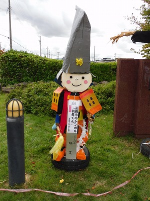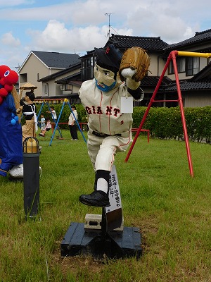 ![]() 素朴なかかしの部:今年は豊作おにぎり食べほうだい/b> | ![]() 子どもの部:高岡市のシンボル「利長くん」 |