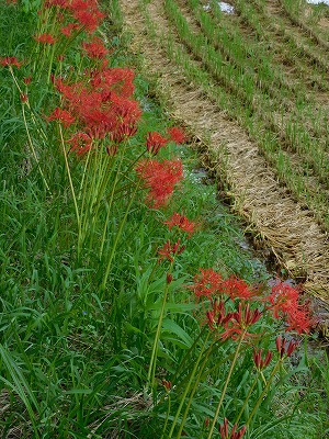 小矢部市五郎丸のヒガンバナの里。 まだあまり咲いていませんでした。