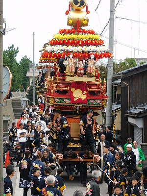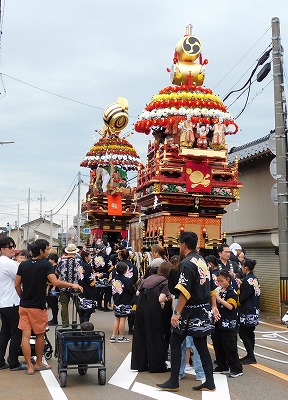 令和7年 海老江曳山まつり。 毎年秋分の日に開催。 曳山は3基(東町・中町・西町)